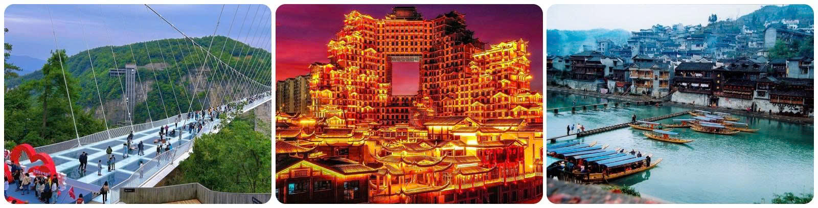 - Đại Hiệp Cốc (Cầu Pha Lê) - Cây cầu đáy kính nổi tiếng này rộng 6m, dài 430m, bắc qua 2 vách đá ở độ cao 300m được xem là cầu kính cao và dài nhất thế giới(Chi phí tự túc).